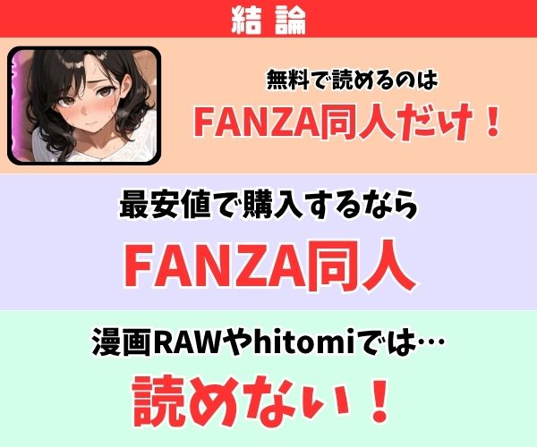 全話無料で読むことはできませんでしたがFANZA同人お得なセールを定期的に開催しているのでお得に、最安値で購入することが可能です。