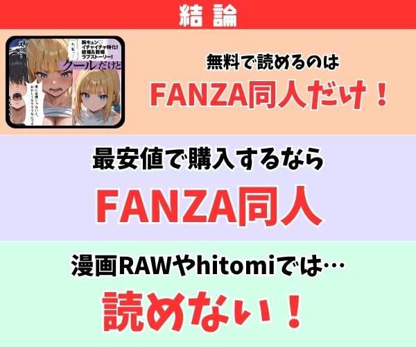• 最安値で読めるのはFANZA同人だけ
