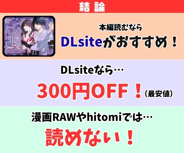 DLsiteです。「セフレの市原が逃がしてくれない」はDLsiteの独占先行配信タイトルであるためどこよりも早くに最新話を読むことが可能ですし、新規会員クーポンを利用することで300円OFFでお得に購入することもできます。