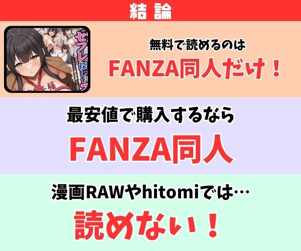 全話無料で読むことはできませんでしたがFANZA同人お得なセールを定期的に開催しているのでお得に、最安値で購入することが可能です。
