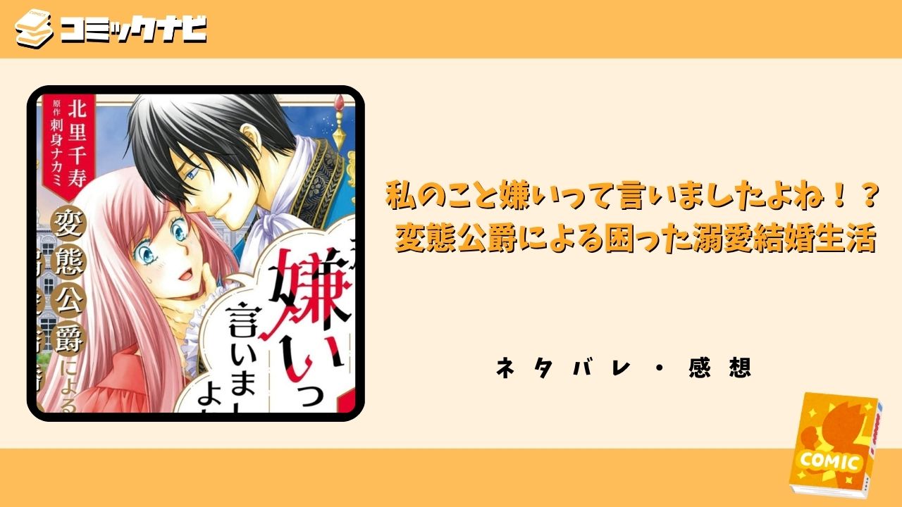 『私のこと嫌いって言いましたよね!?変態公爵による困った溺愛結婚生活』は原作刺身ナカミ、作画北里千寿が手掛けるファンタジー恋愛漫画で、コミックシーモアで絶賛配信中。