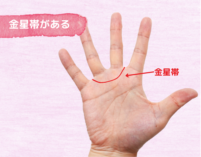 金星帯とは、中指と薬指の間から人差し指と中指の間にかけて、弧を描くように現れる線のことです。