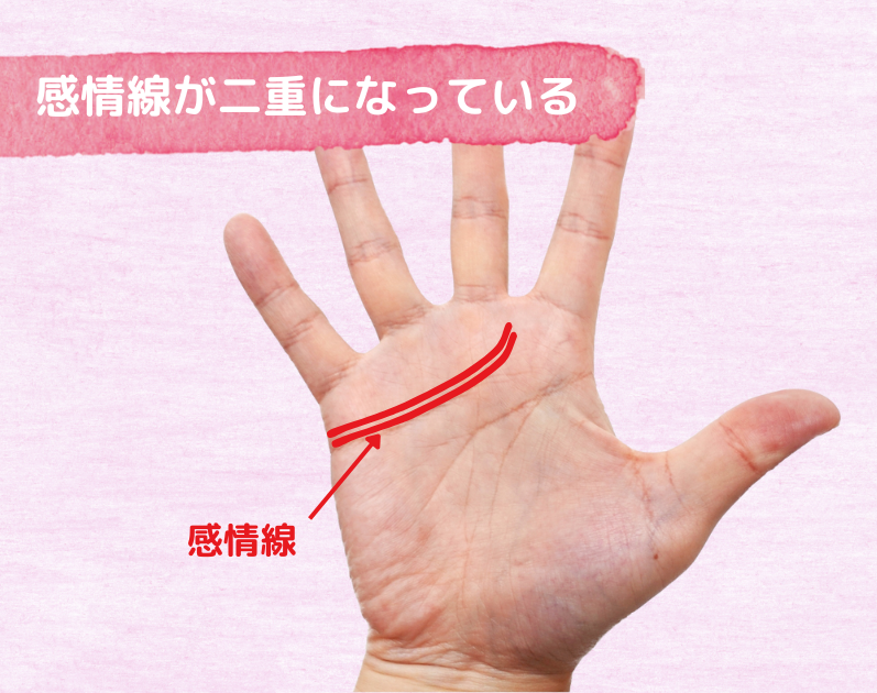 感情線が二重に現れている手相は、「二重感情線」とも呼ばれ、恋愛運の強さや愛情の深さを象徴します。
