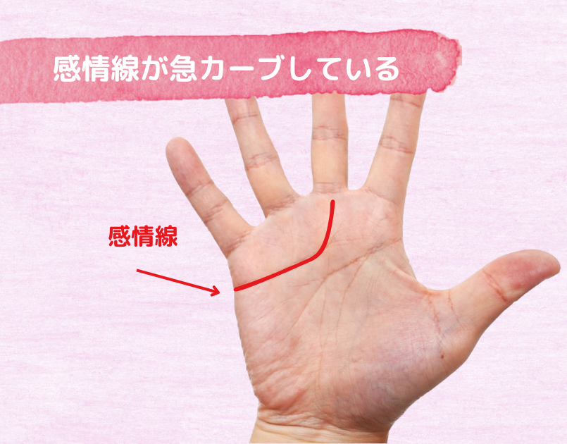 感情線が急カーブを描いている手相は、情熱的な恋愛運の表れです。