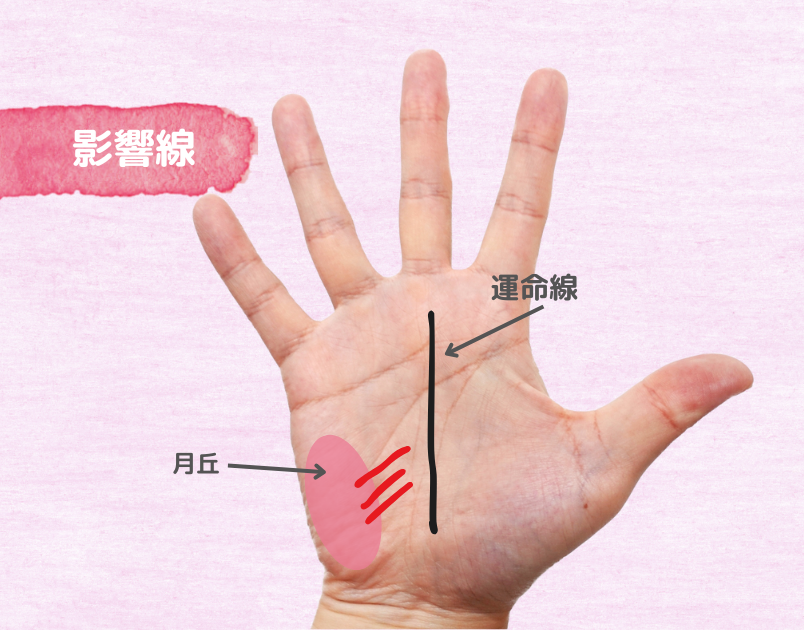 月丘から出て運命線に向かっている線ですが、運命線にくっつかない斜めの線です。