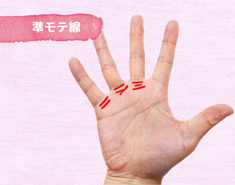 横線が幾つも中指・薬指・小指の付け根のそれぞれに表れているのが準モテ線です。