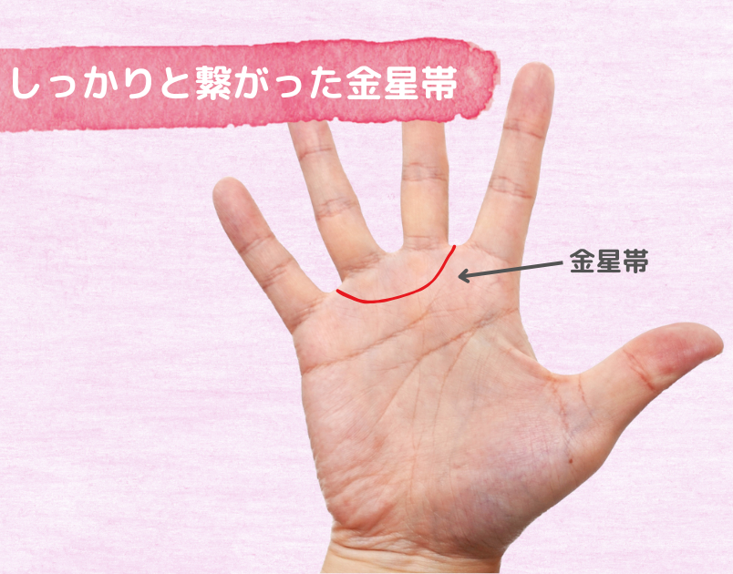 人差しと中指、薬指と小指を結ぶ半円のように描かれた線を、モテ線の金星帯と言います。