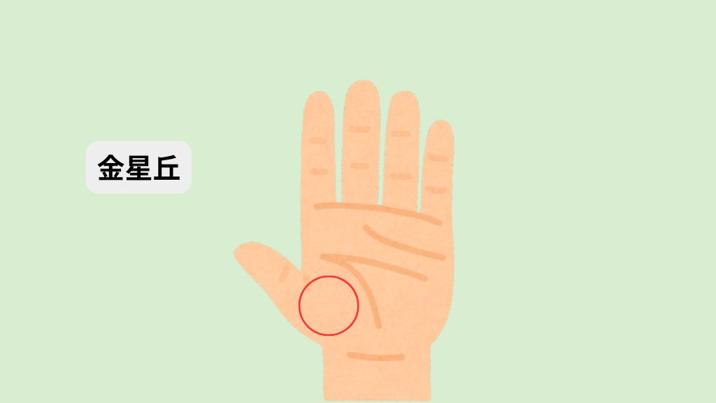 金星丘とは親指の付け根あたりにある部分で、「愛情」「生命力」「性的エネルギー」を象徴する場所。