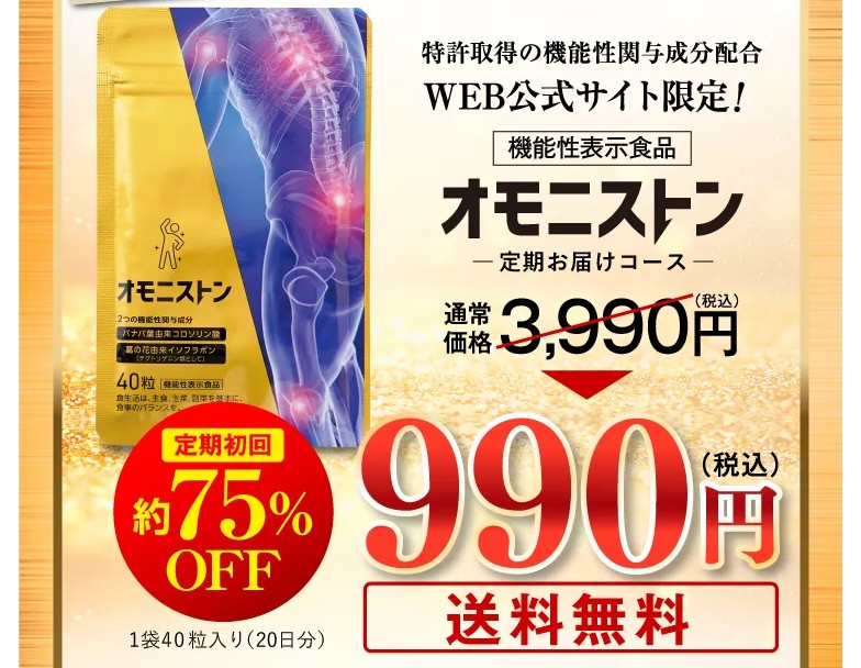 現在、オモニストンはWEBサイト限定で、定期初回が約75%OFFの990円(税込)で購入が可能です。
