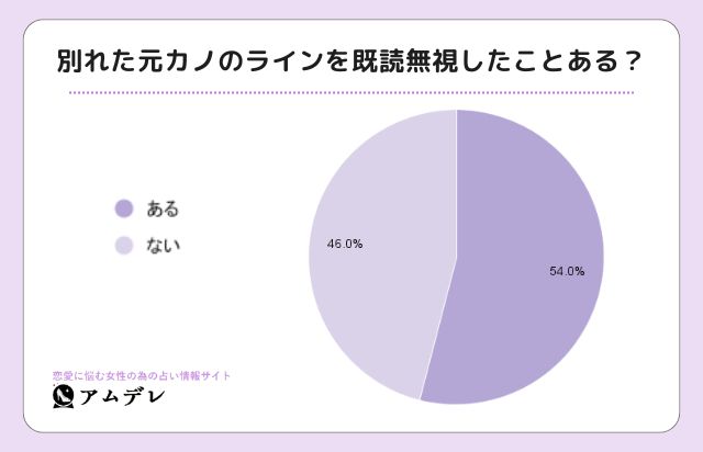 元カノのLINEを既読無視したことある男性は54%で、過半数の方が元カノの連絡を無視したことがあるようです。