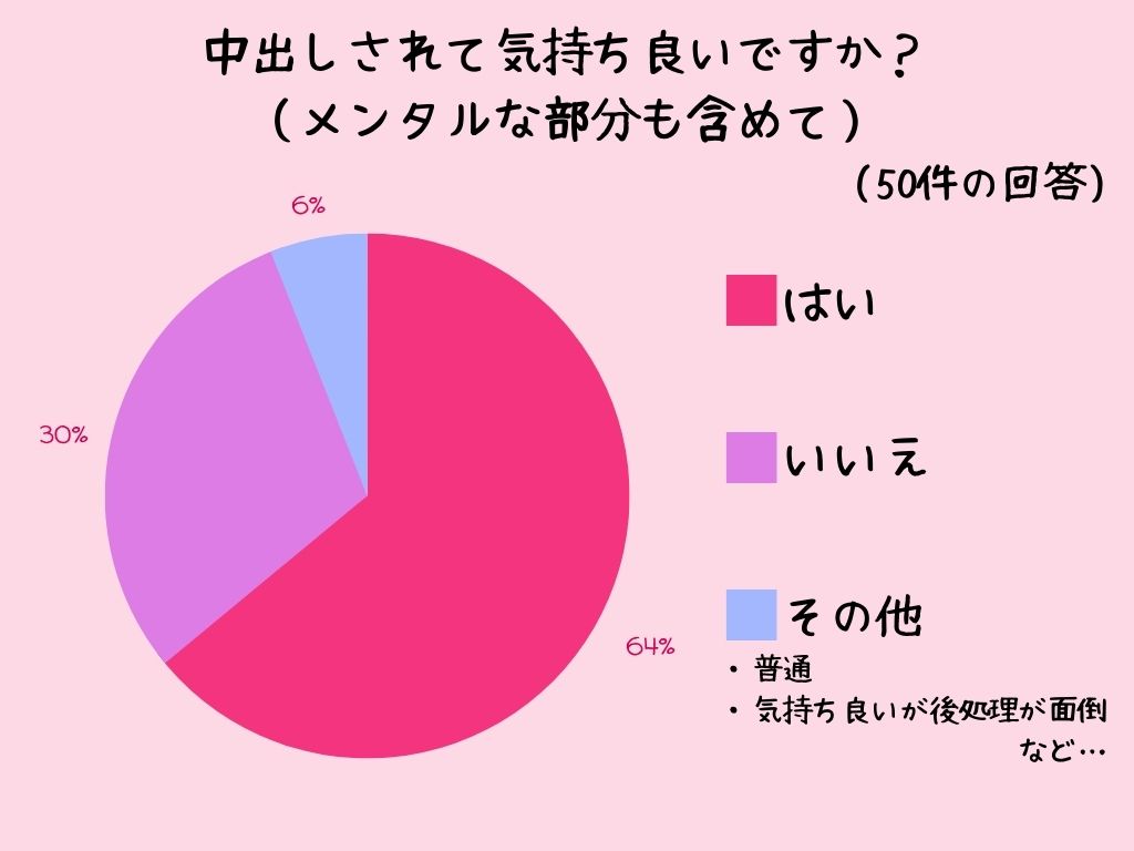 女性に「中出しは気持ちいか」のアンケート調査をしたところ、結果は半数以上の64%がはいでした!