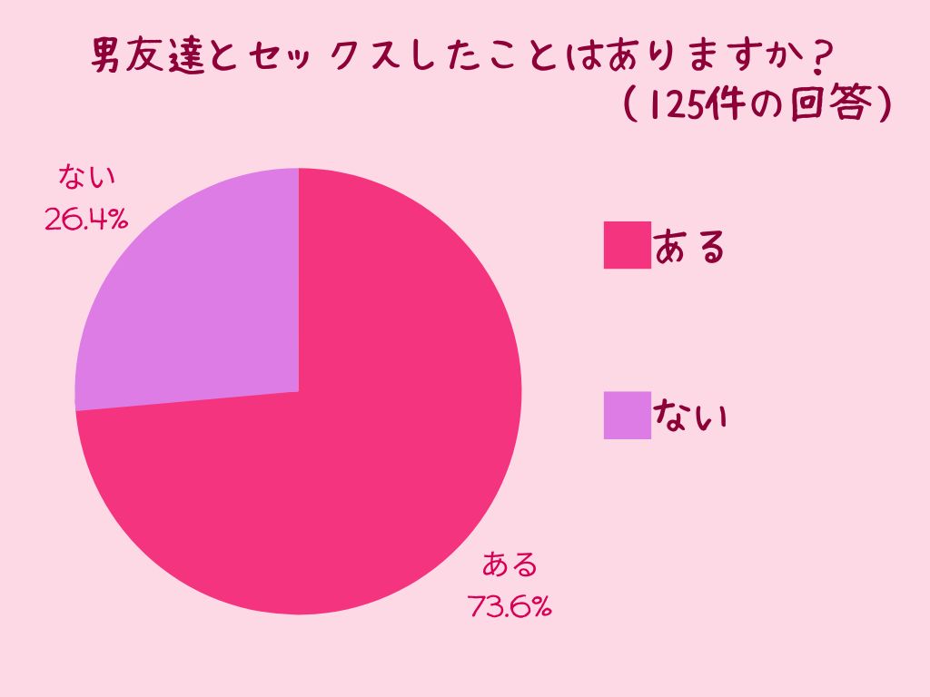 まず「男友達とセックスしたことありますか?」の質問では、なんと7割超えの女性があると回答!
