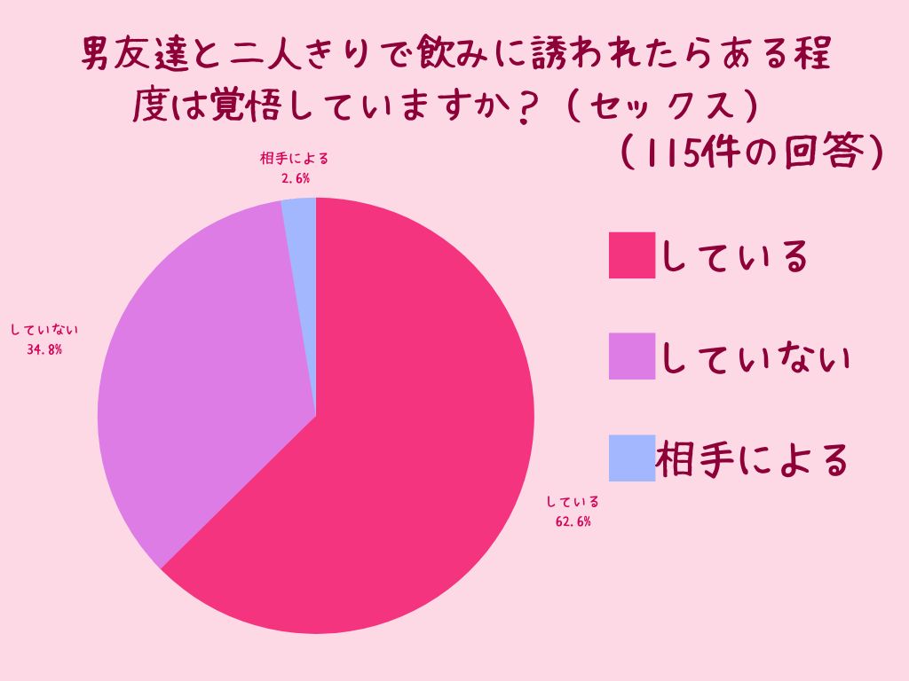 男友達と二人きりで飲みに誘われたらある程度覚悟していますか?(セックス)(115件の回答)