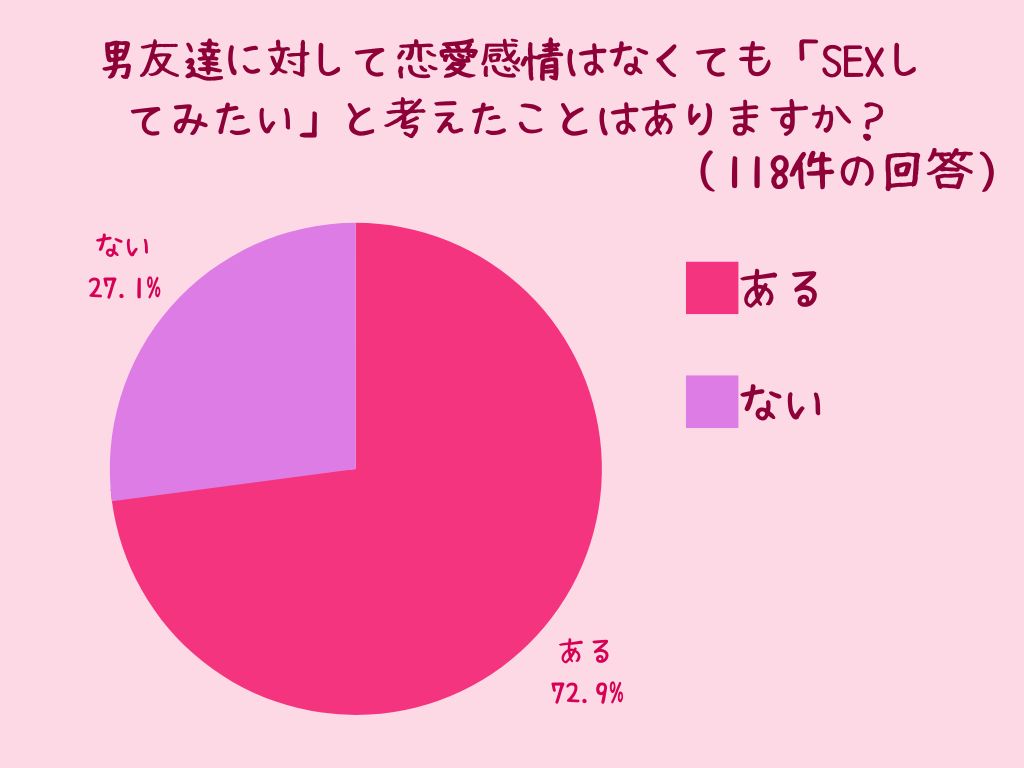 「恋愛感情のない男友達とセックスしてみたいと考えたことがあるか?」の質問では、やっぱりあるが70%超え!