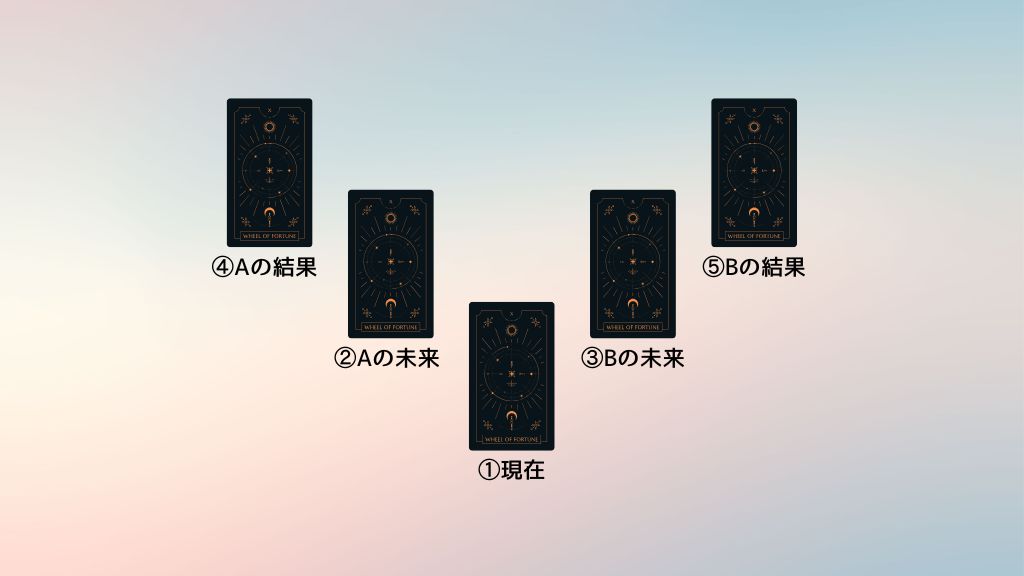二者択一では5枚のカードを使って2つの選択肢の今後を占います。